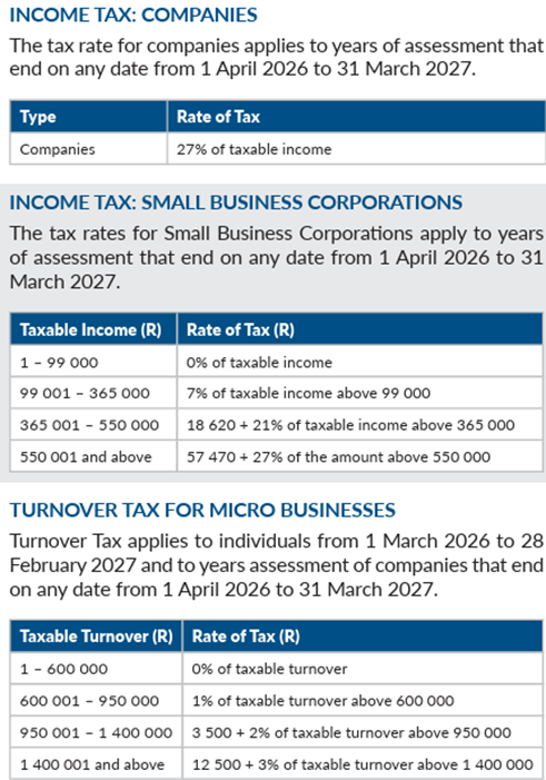 Individual taxpayers: Your tax rates (and the associated rebates and medical tax credits) are increased in line with inflation. That’s welcome relief after last year’s unchanged tax tables which resulted in “fiscal drag” (also referred to as “bracket creep”) for anyone receiving a salary increase that pushed them into a higher tax bracket.